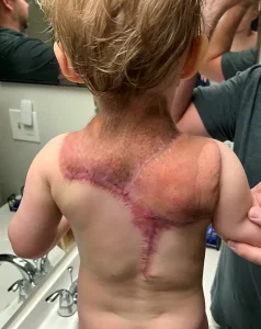 Clearwater, Florida, toddler James McCallum earned the nickname “little Ninja Turtle” from his parents due to a rare skin condition resembling a turtle shell on his back. Despite inconclusive ultrasounds, concerns arose when scabbing and lumps appeared on James’ back post-birth. The mysterious condition covered 75% of his back, growing rapidly, impacting his sleep and daily life.