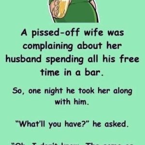 A frustrated wife complained that her husband spent all his free time at the pub. One night, he decided to take her along. “What’ll you have?” he…
